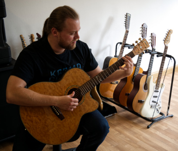 Von der Leidenschaft zum Beruf Seit 01.04.2015 bin ich nun freiberuflicher Gitarrenlehrer und darf mich glücklich schätzen, mit tollen Menschen zu arbeiten und in Vergangenheit gearbeitet zu haben. Ich habe nämlich bereits während des Studiums angefangen, Gitarrenunterricht zu geben. Mit einem Gespräch in einer Kneipe hat 2011 alles angefangen. Aus einem Schüler wurden schnell mehr, weshalb ich mich 2014 entschlossen habe, die Uni zu verlassen, um einerseits meinen Traum zu leben und andererseits weil die Zeit knapp wurde, da immer mehr Schüler ohne Werbung kamen. Diese Tatsache hat mich wirklich beeindruckt und mir sehr geschmeichelt. Und nun macht es meinen Schülern bzw. Schülerinnen und natürlich auch mir riesen Spaß, neue Songs zu meistern und den eigenen Weg an dem wunderbaren Instrument Gitarre zu finden. Gitarre zu spielen und selber Musik zu machen ist geil!